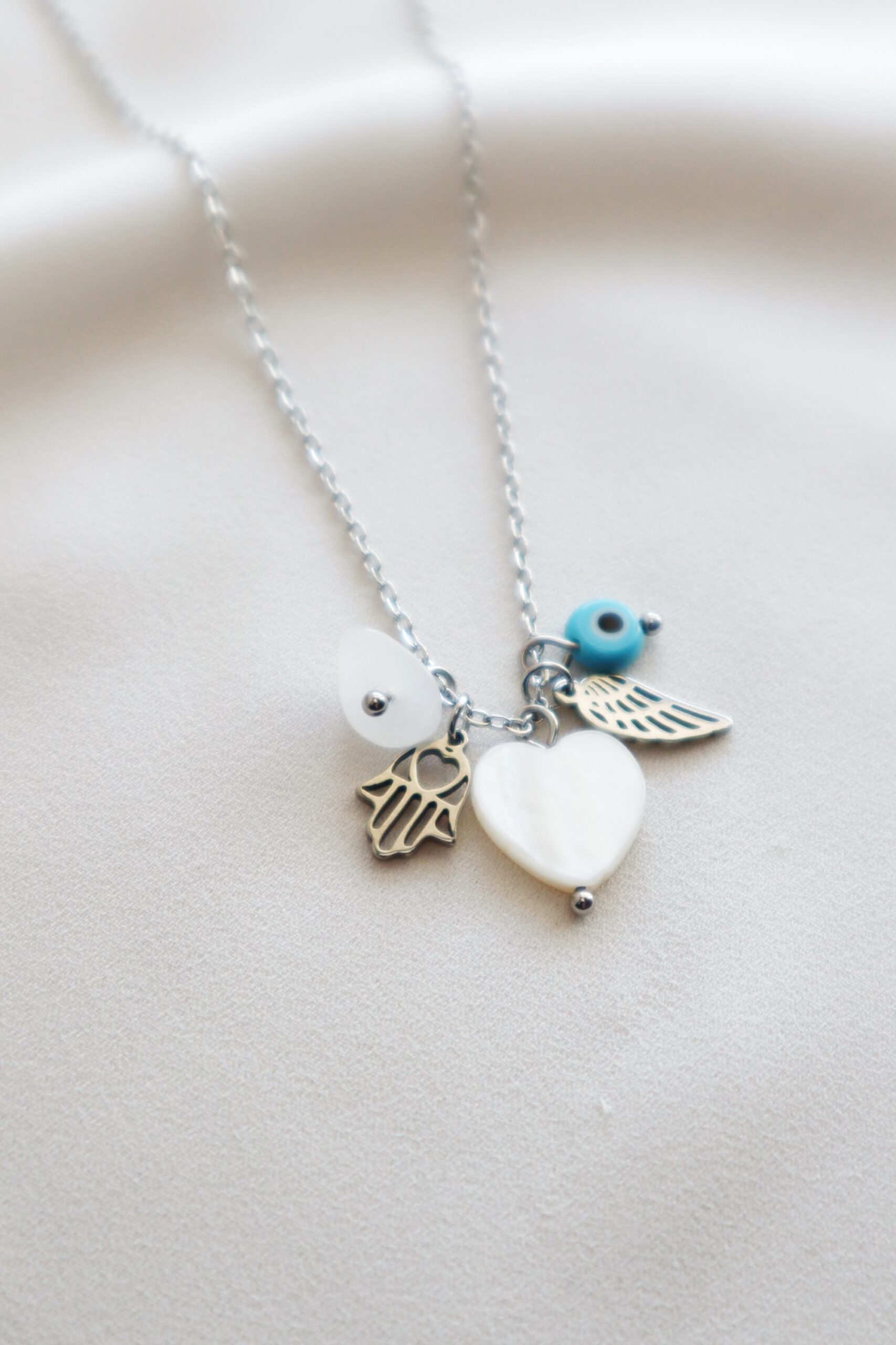 Colar em aço inoxidável com vários amuletos